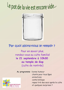 Venez assister, en famille, à notre culte de rentrée, suivi d‘un repas tiré du sac :